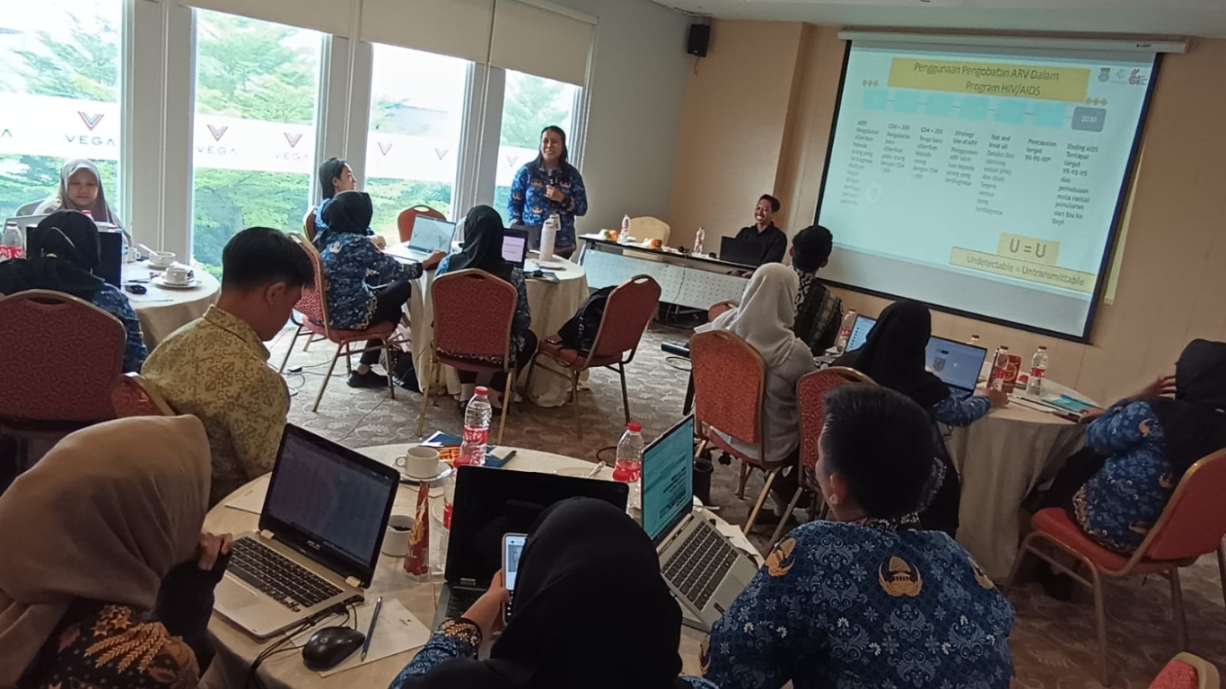 Kegiatan kemudian dilanjutkan dengan pemaparan materi dari Dinas Kesehatan Kabupaten Tangerang, yang menyoroti pentingnya validasi data dan sistem pelaporan yang terintegrasi. Materi mencakup evaluasi capaian program HIV tahun berjalan, mekanisme pencatatan dan pelaporan berbasis sistem informasi kesehatan, serta strategi perbaikan kualitas data agar dapat digunakan secara tepat dalam perencanaan dan evaluasi kebijakan daerah.