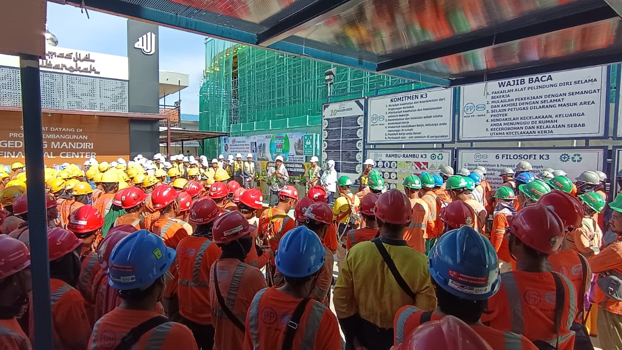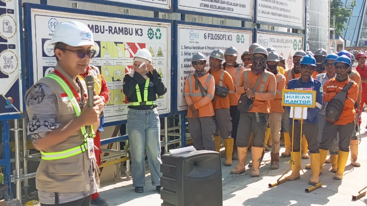 Acara dibuka oleh Bapak Rizal Hutama, selaku perwakilan dari PP-WIKA. Kemudian dilanjutkan dengan pembacaan kebijakan perusahaan terkait keselamatan dan kesehatan kerja oleh Bapak Agus Pranoto, perwakilan Tim K3. Dalam sambutannya, beliau menegaskan bahwa kesehatan pekerja merupakan prioritas utama manajemen proyek, dan kegiatan seperti ini menjadi bentuk nyata komitmen perusahaan dalam menjaga lingkungan kerja yang aman dan sehat.